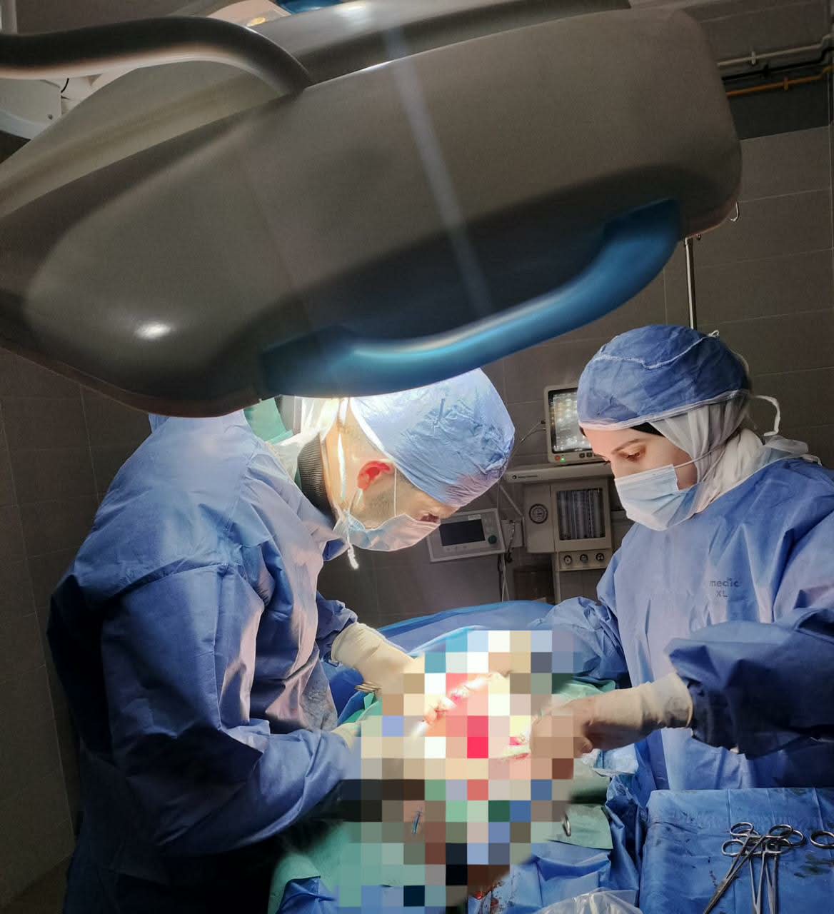 وأجري التدخل الجراحي بقيادة الدكتور محمد سامي راشد، أخصائي الجراحة العامة ورئيس الهيئة الطبية.