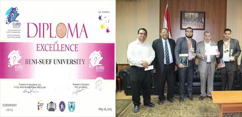 أعلن الدكتور أمين لطفي رئيس جامعة بني سويف، عن حصول الدكتور أحمد حسنى علي محمد المدرس المساعد بكلية العلوم، على كأس التميز العلمي والميدالية الذهبية وكذلك الميدالية الذهبية من دولة مولدوفا (AGEPI)، وذلك من معرض الاختراعات الدولي الأوروبي (EUROINVENT – 2015) المقام بمدينة ياش العاصمة الثقافية لدولة رومانيا في الفترة من 14 إلى 16 مايو 2015.
