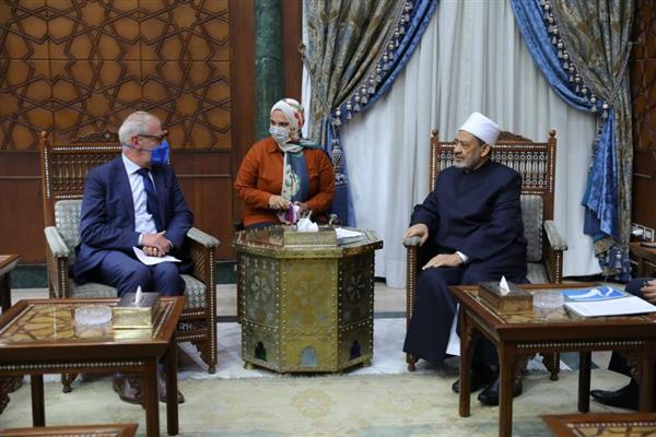 استقبل فضيلة الإمام الأكبر الدكتور أحمد الطيب، شيخ الأزهر الشريف، اليوم الأربعاء بمقر مشيخة الأزهر، لوران دي بوك، رئيس بعثة المنظمة الدولية للهجرة في مصر، لمناقشة سبل المشاركة في التحضير للمنتدى الدولي للهجرة والدين، والتعاون المشترك لدعم اللاجئين والمهاجرين وتعزيز قيم التسامح والأخوة والتعايش.