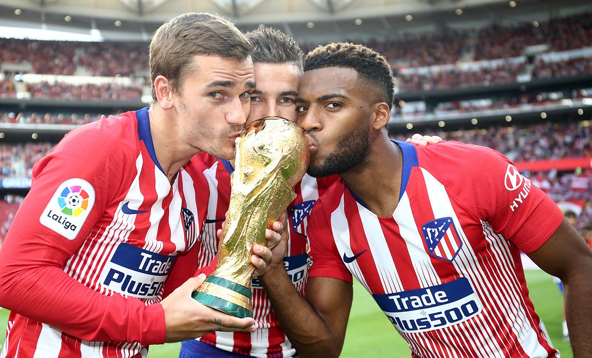 قدم كل من أنطوان جريزمان، توماس ليمار و لوكاس هيرنانديز لاعبو المنتخب الفرنسي وأتليتيكو مدريد الإسباني اليوم السبت كأس العالم للجماهير، وذلك قبل مباراة الفريق أمام رايو فاليكانو ضمن منافسات الجولة الثانية من الدوري الإسباني والتي تقُام على ملعب واندا ميتروبوليتانو.