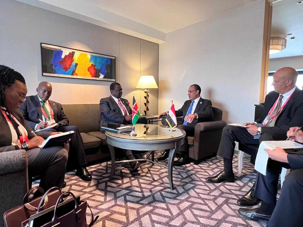 من جانبه، أعرب الوزير الأول ووزير الخارجية وشئون المغتربين الكيني عن تقدير بلاده للعلاقات الثنائية المتميزة مع مصر، واهتمامها بتعزيز التعاون الثنائي في كافة المجالات، وأبدى حرص بلاده على زيادة التبادل التجاري مع مصر وتشجيع الاستثمارات، فضلاً عن الاستفادة من الخبرات المصرية في مجالات تميزها. كما أكد على اهتمام بلاده باستمرار التنسيق والتشاور مع مصر بشأن التحديات الإقليمية والدولية الراهنة.