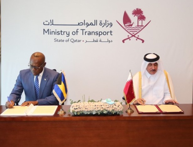 وقع جاسم بن سيف السليطي وزير المواصلات، وإزاك تشيستر كوبر نائب رئيس مجلس الوزراء وزير السياحة والاستثمار والطيران في جزر البهاما، اليوم، اتفاقية خدمات جوية بين دولة قطر وجزر البهاما.