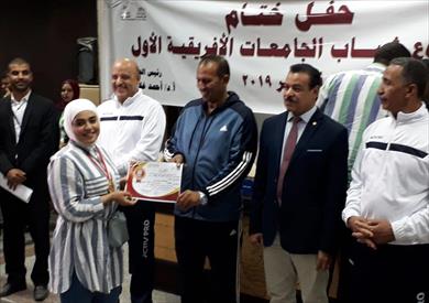 وقال الدكتور مصبح الكحيلى مدير عام رعاية الشباب، إن طلاب الجامعة شاركوا فى عدد من المسابقات المختلفة، وفازت الطالبة آمنة عبد العزيز بكلية التجارة على المركز الأول والميدالية الذهبية فى الغناء وتم اختيارها لإحياء الحفل الختامي للمهرجان، كما فاز الطالب عبد الخالق شعراوى بكلية الحاسبات بالمركز الثالث والميدالية البرونزية برمجيات (تنشيط السياحة ).