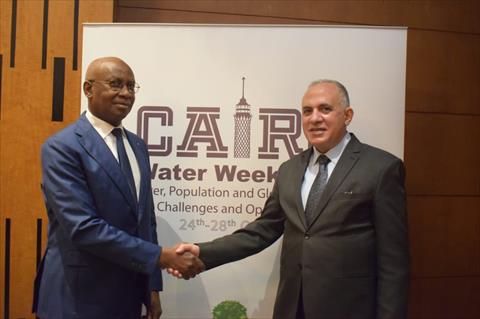 عقد الدكتور محمد عبد العاطي، وزير الموارد المائية والري، اليوم لقاءً مع سيرين مباي ثيام، وزير المياه والصرف الصحي بدولة السنغال، الذي يشارك في فعاليات أسبوع القاهرة الرابع للمياه.