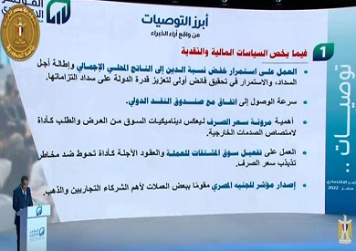 وأضاف خلال كلمة، ضمن فعاليات الجلسة الختامية للمؤتمر الاقتصادي مصر 2022، مساء الثلاثاء، أن التوصيات تشمل: