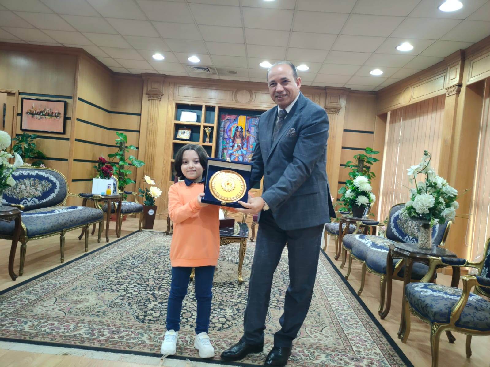 وشارك الطفل في المسابقه أون لاين، وأهدى درع المحافظة إليه تقديراً لفوزه المشرف.