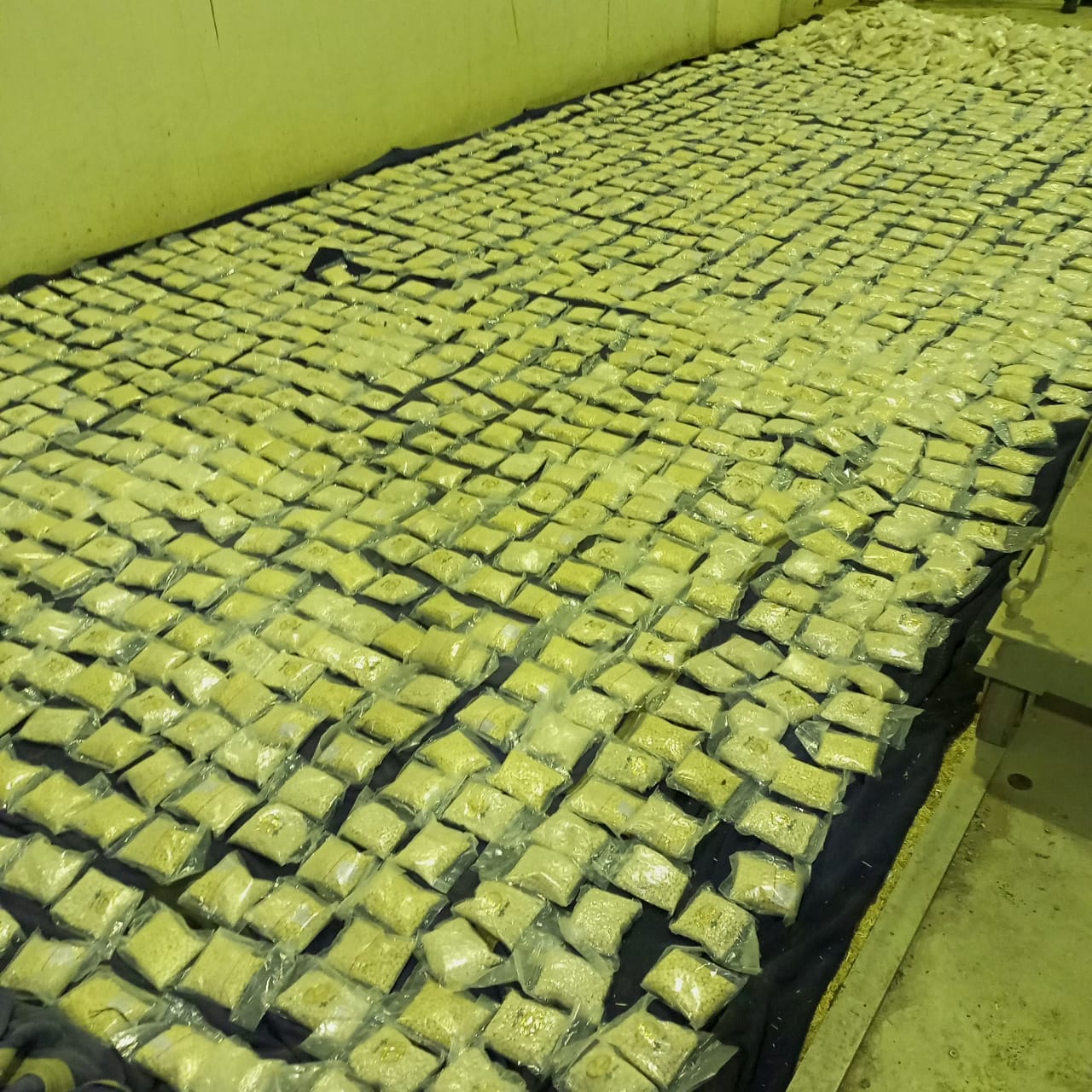وأضاف أنه "بعد عملية تفتيش دقيقة لشاحنتين مبردتين تحملان لوحات أجنبية وجدت الحبوب مخبأة ضمن شحنة كراتين تحوي عجينة التمر".