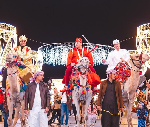 وظهر بابا نويل على ظهر جمل يجوب شواطئ الفنادق والمنتجعات السياحية لتوزيع هدايا الكريسماس على النزلاء والأطفال تزامنًا مع أعياد الميلاد الكريسماس، ونظم مسئولو قطاع سهو سكوير موكب الثلاث ملوك والتي تعد من أبرز العروض التي يحرص السائحون على متابعتها كل عام خلال احتفالات الكريسماس، وفيها ينطلق مشهد الملوك الثلاثة فوق الجمال يتجولون في أنحاء القطاع برفقة "بابا نويل" الذي يوزع الهدايا على السائحين في أجواء كرنفالية، إضافة إلى الاستعراضات الغنائية، والنافورة الراقصة، وعروض الساحر، وفقرات استعراضية.