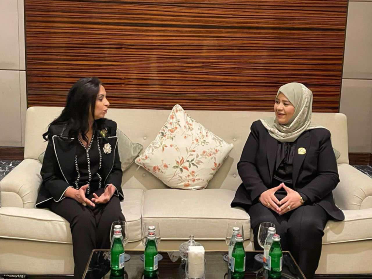 كما شاركت في جلسة حول "سياسات دعم الأسر المنتجة بين الواقع والمأمول" ضمن الحدث رفيع المستوى حول "الأسر المنتجة وريادة الأعمال" بالبحرين، مستعرضة فيها تجربة مصر في دعم مشروعات الأسر المنتجة.