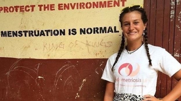 كانت حالة أليس، 23 عاما، قد شُخصت بإصابة مزمنة بداء انتباذ بطانة الرحم عندما كانت تبلغ من العمر 14 عاما، وشاركت في حملات بغية رفع الوعي بالصحة خلال فترة الطمث وتدريسها ضمن المناهج الدراسية.