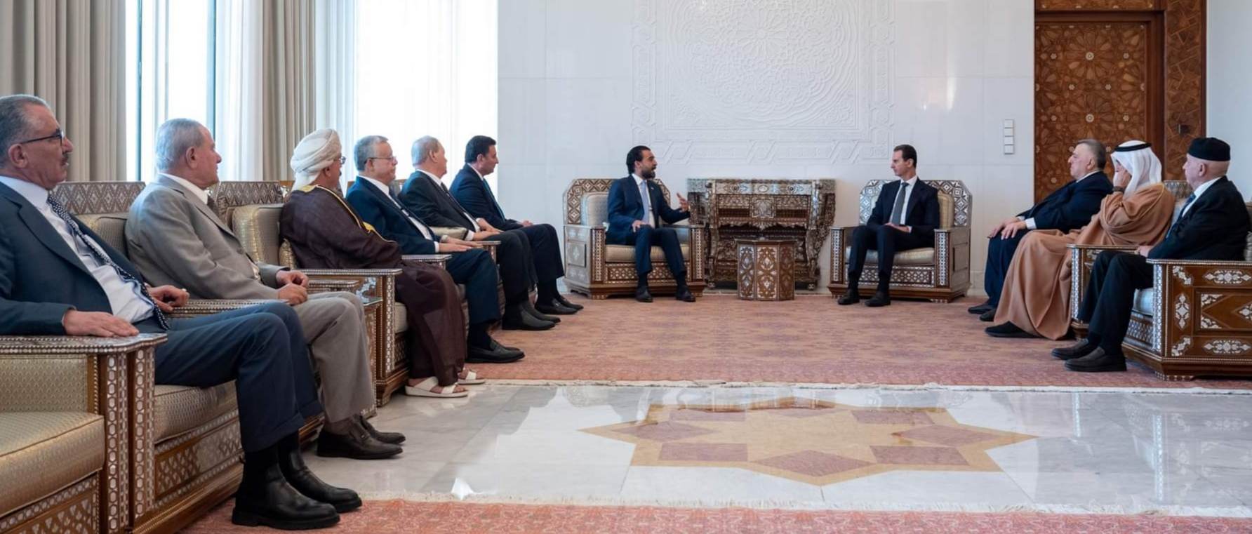 وبحسب بيان صادر عن الرئاسة السورية، أكد «الأسد» أنّ زيارة الوفد اليوم، تعني الكثير بالنسبة للشعب السوري؛ لأنها تعطي مؤشراً على وقوف أشقائه العرب إلى جانبه، في الظروف الصعبة التي يتعرض لها بفعل الحرب الإرهابية وتداعيات الزلزال.