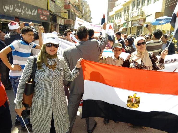 ورفع المشاركون في المسيرة عددا من أعلام مصر، ورددوا أغاني وطنية، منها: «قالو إيه»، و«أبو الرجولة» للمطرب الشعبي حكيم.