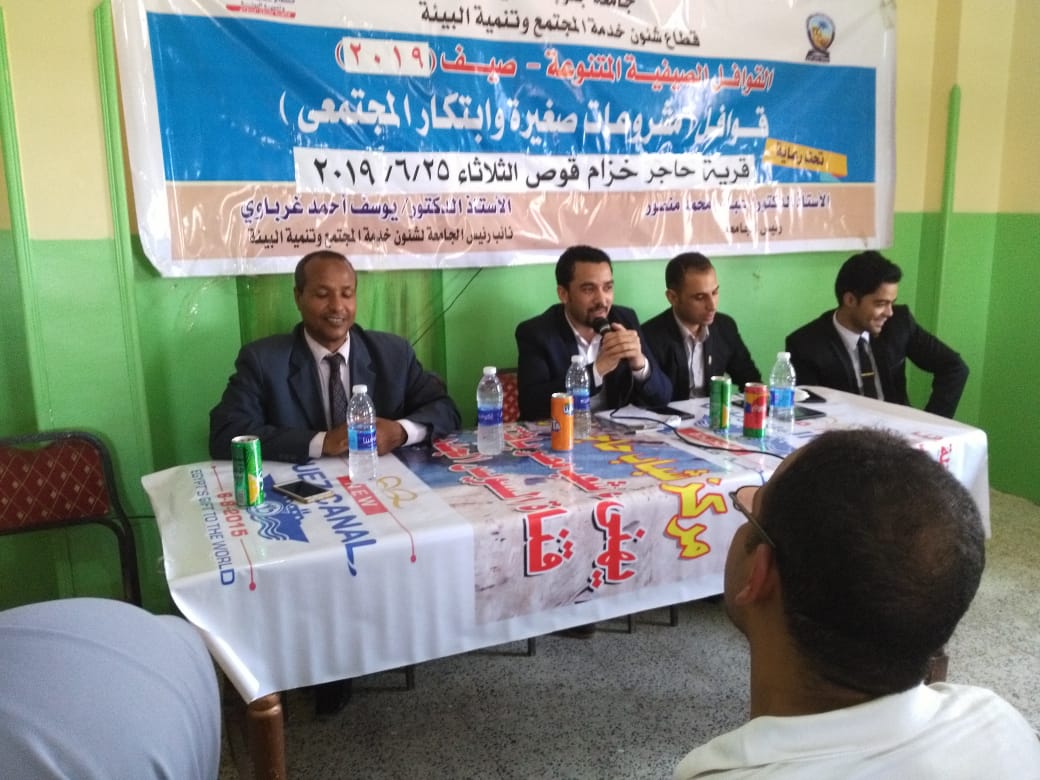 تضمنت القافلة عقد ندوة بجمعية خدمة المجتمع بقرية حاجر خزام، بحضور الدكتور عباس منصور رئيس جامعة جنوب الوادى والدكتور يوسف غرباوى نائب رئيس الجامعة لشئون خدمة المجتمع وتنمية البيئة وهدى المغربي رئيس مدينة قوص وأكثر من 80 مواطناً ومواطنة.