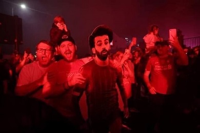 حرصت جماهير ليفربول على اصطحاب نسخة كرتونية من محمد صلاح، نجم الريدز، خلال احتفالهم بلقب الدوري الإنجليزي، نظرا لدوره الكبير في حسم لقب البريميرليج للريدز.
