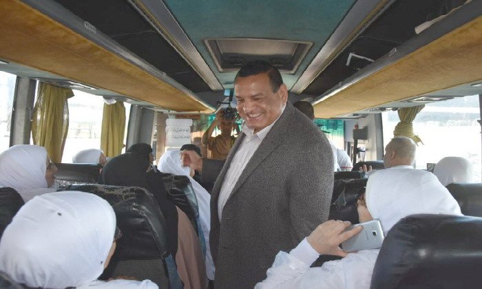 ورافق المحافظ، كلا من المهندس حازم الأشموني السكرتير العام، واللواء محمد شوقي بدر السكرتير المساعد، ومحمد السيد عبدالمجيد وكيل وزارة التضامن الاجتماعي، وكامل غطاس رئيس مدينة دمنهور، واللواء عبدالمنعم السبيعي المدير التنفيذي لمشروع مجمع المواقف وجمع كبير من أهالي وذوي الحجاج.