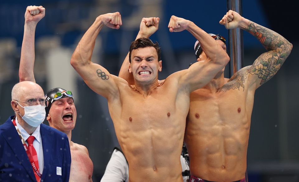 توجت أمريكا اليوم الاثنين بالميدالية الذهبية لسباق السباحة 4×100 متر تتابع حر للرجال ضمن منافسات دورة الألعاب الأولمبية المقامة بالعاصمة اليابانية طوكيو.
