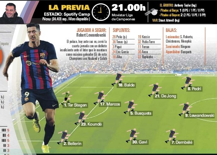 يستعد نادي برشلونة لمواجهة بايرن ميونخ، مساء اليوم الأربعاء، ضمن منافسات الجولة الخامسة من المجموعة الثالثة لدور المجموعات من دوري أبطال أوروبا على ملعب «سبوتيفاي كامب نو».