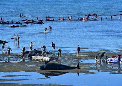 وفي شباط/فبراير 2017 ، نفق أكثر من 300 حوت تجريبي في الطرف الشمالي منساوث ايلاند في نيوزيلندا ، في واحد من أكبر حوادث الجنوح الجماعي للحيتان في الدولة .