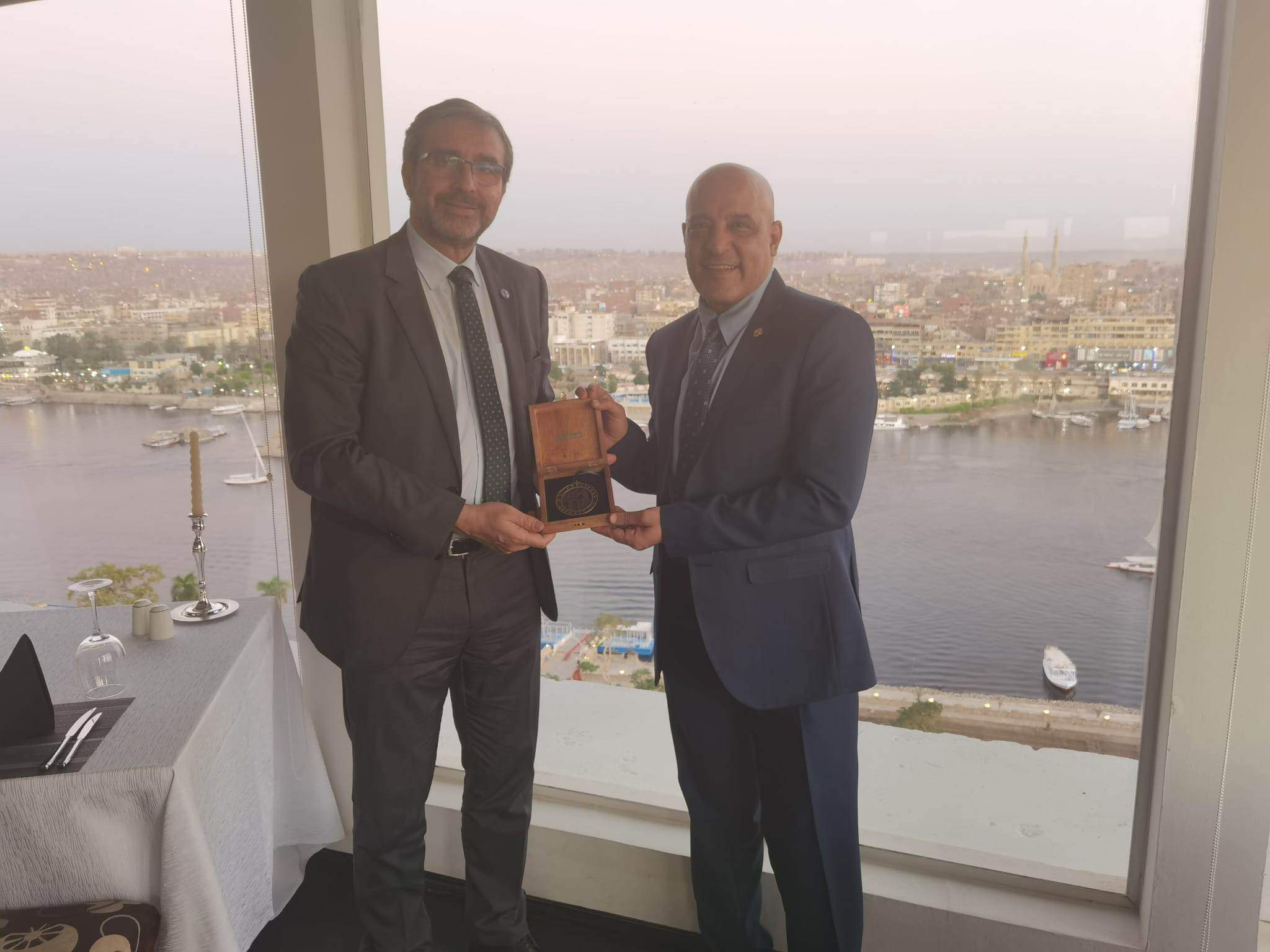 وفي ختام اللقاء قدم الدكتور خوان جوميث رئيس جامعة خايين الإسبانية، درع الجامعة لدكتور أيمن محمود عثمان رئيس جامعة أسوان تقديرا لأهمية التعاون المثمر والبناء بين الجامعتين.