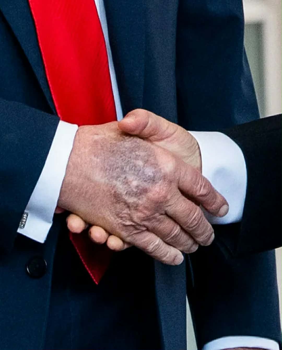 ومع ذلك، لا تزال التساؤلات قائمة حول صحة الرئيس الأمريكي. فقد كانت الكدمة الداكنة على يد ترامب اليمنى محورا للعديد من النقاشات. وغالبا ما تصور هذه الكدمة مغطاة بضمادة أو مساحيق تجميل.