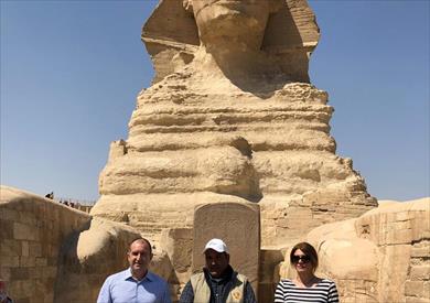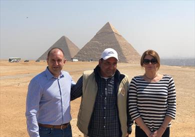 وقال محيي الدين إن الجولة بدأت بزيارة الهرم الأكبر من الداخل، مشيرا إلى أن الرئيس الضيف صرح بأن زيارة الهرم من الداخل هي بمثابة حلم كبير لديه كما عبر عن سعادته وإعجابه بتلك المغامرة، وتساءل عن عدد الأحجار التي تم استخدامها لبناء هذا الهرم العظيم والذي يعد جزء مهم من الحضارة المصرية العظيمة وتاريخها.