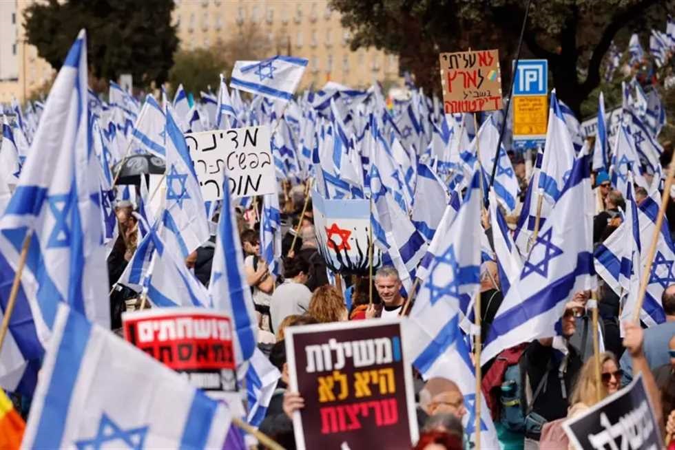 وتظاهر آلاف الإسرائيليين في عشرات المواقع في أنحاء البلاد، ليل الأحد/ الاثنين، للاحتجاج على مشروع قانون تعديل النظام القضائي.