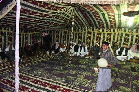وأشار إلى أنه من عادات القبائل البدوية، عدم الجلوس مع الضيوف لتناول الطعام، ولكنه يظل حولهم ليقسم عليهم بتناول الطعام ويجلسون على راحتهم، موضحًا أن من عادات الضيوف أن يبدأوا في تناول الطعام معًا وينتهون منه في نفس التوقيت تقريبًا، ومن العيب أن يظل أحدهم يأكل بعد انتهاء رفاقه من تناول الطعام.