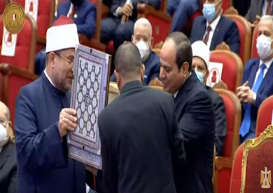 أهدى الدكتور محمد مختار جمعة، وزير الأوقاف، نسخة كريمة من القرآن الكريم إلى الرئيس عبدالفتاح السيسي، بمناسبة الاحتفال بليلة القدر.