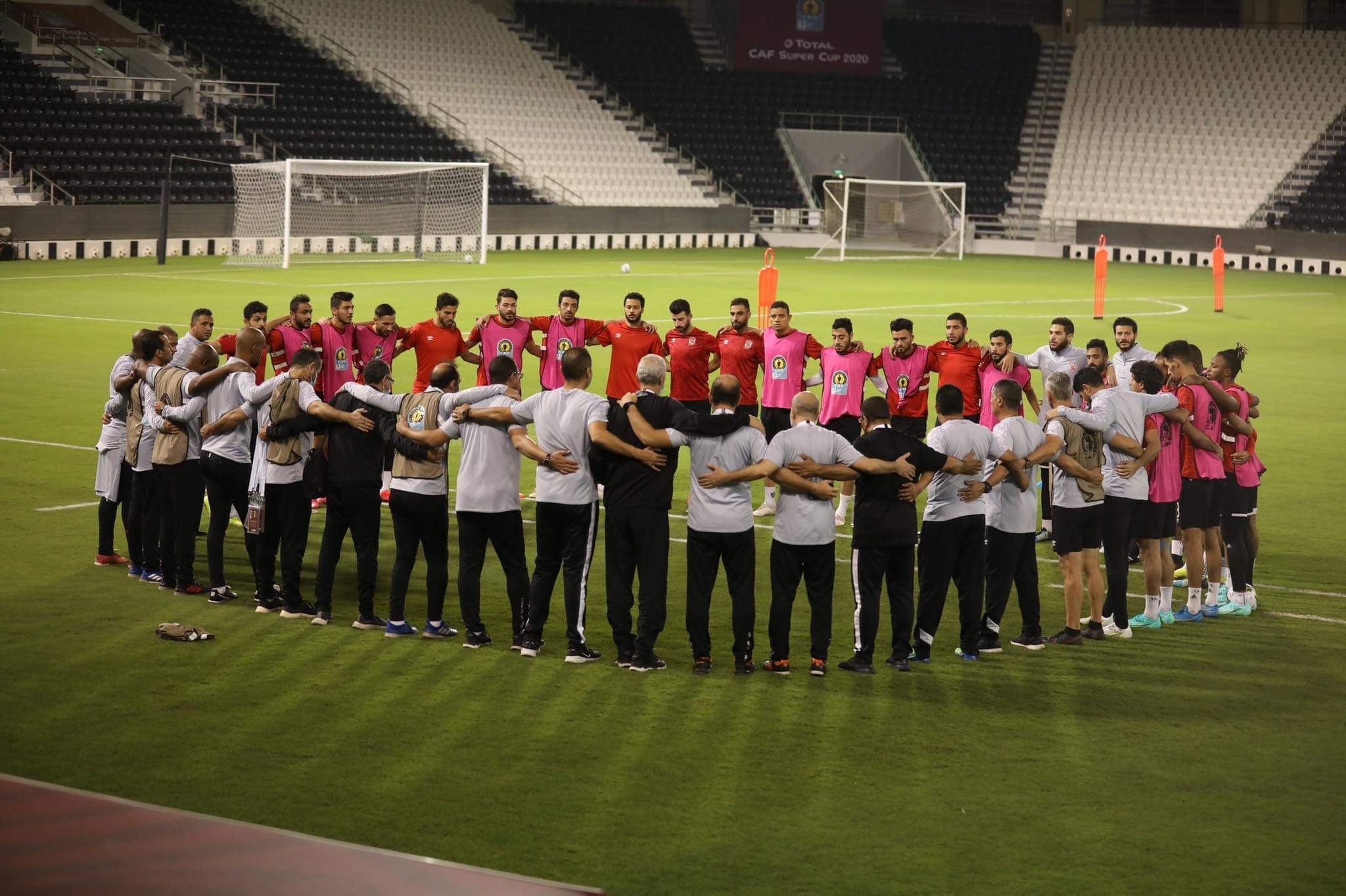 الفريق الأول لكرة القدم بالنادي الأهلي اختتم استعداداته لمباراة نهضة بركان، من خلال التدريب الختامي الذي أقيم مساء اليوم بمشاركة جميع اللاعبين على ملعب جاسم بن حمد بنادي السد، الذي يستضيف مباراة السوبر الإفريقي غدًا الجمعة.