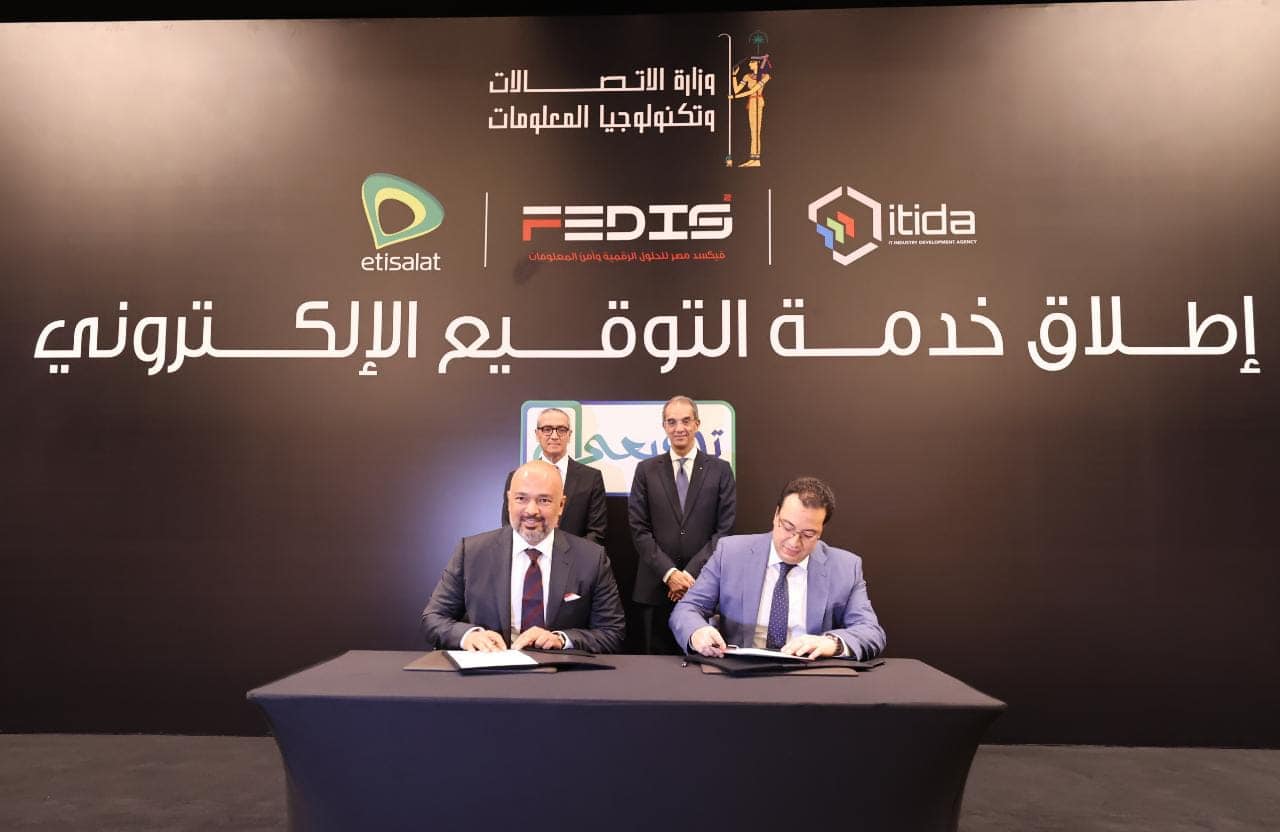 شهد الدكتور/ عمرو طلعت وزير الاتصالات وتكنولوجيا المعلومات مراسم إطلاق خدمات التوقيع الإلكترونى "توقيعى" التى تعد ثمار التعاون المشترك بين شركة فيكسد مصر - للحلول الرقمية وأمن المعلومات- الحاصلة على ترخيص تقديم خدمات التوقيع الإلكترونى، وشركة اتصالات مصر المشغل الرقمى المتكامل لخدمات الاتصالات وتكنولوجيا المعلومات فى مصر.