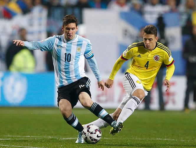 تأهل منتخب الأرجنتين بقيادة ساحره ليونيل ميسي إلي الدور نصف النهائي من بطولة كوبا أمريكا بفوزه على منتخب كولومبيا بركلات الترجيح 5 - 4 ، في المباراة التي اقيمت على ملعب "ساوساليتو" ضمن ربع نهائي البطولة التي تقام منافساتها بتشيلي.