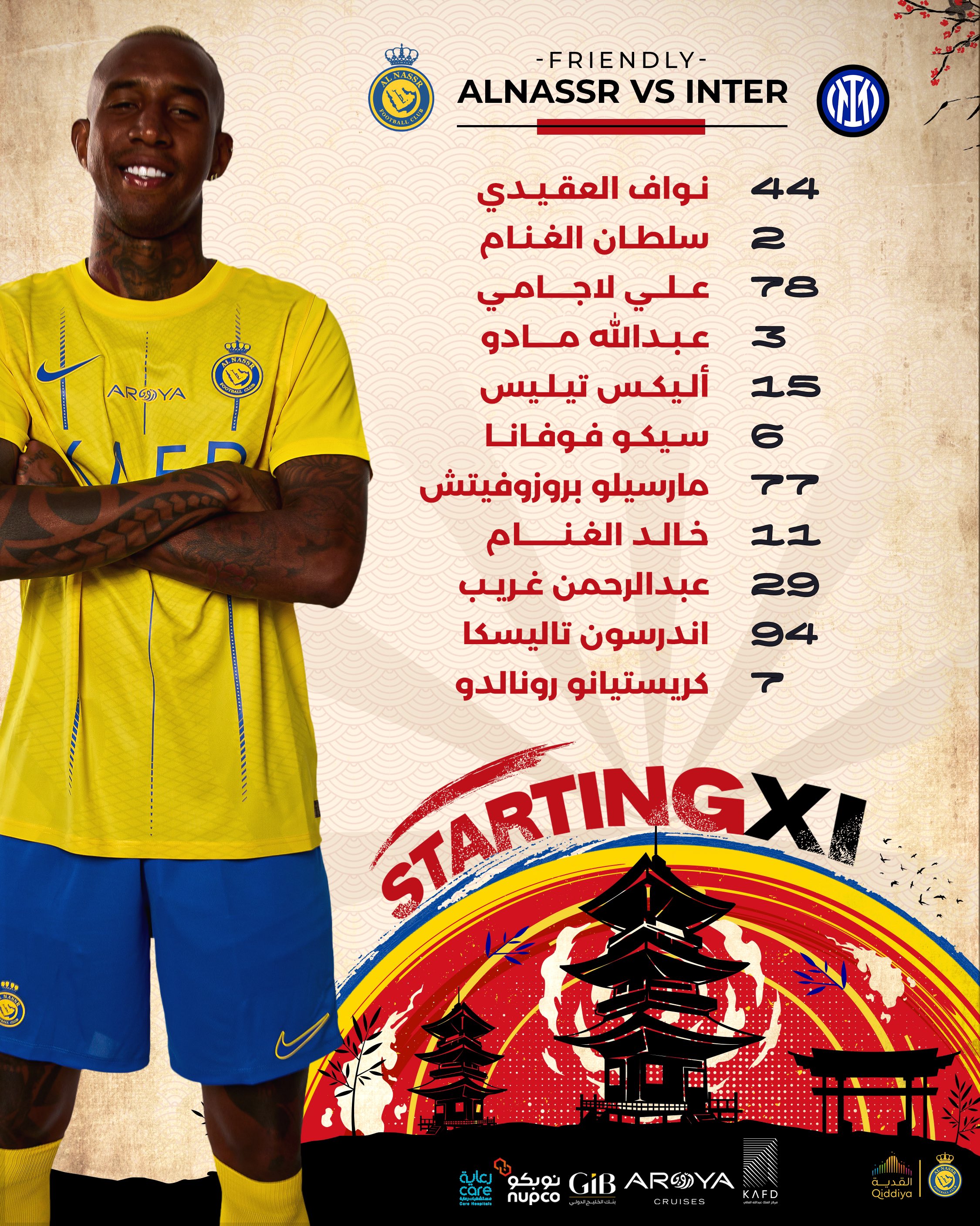 أعلن البرتغالي لويس كاسترو، المدير الفني لفريق النصر السعودي، عن تشكيل فريقه لمواجهة الإنتر، في المباراة الودية التي ستُقام بين الفريقين اليوم الخميس على ملعب يانمار ستاديوم بمدينة أوساكا اليابانية.