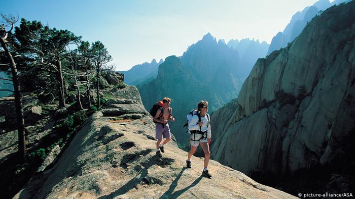 تغطي الجبال نحو 90 بالمائة من جزيرة كورسيكا، درب الجوالة الطويل 20، ويُطلق عليه أيضاً "GR 20" المتلوي عبر الجبال يناسب بشكل خاص هواة المشيّ من الرياضيين. إذ يجب عليهم التغلب على قمم جبلية مختلفة، وبعضها بالتسلق فقط. وتبلغ المسافة بين كالينزانا في شمال الجزيرة وكونكا في جنوبها نحو 180 كيلو متراً. ونذكر هنا أن طريق GR 20 يبقى من أصعب طرق الجوالة في أوروبا.