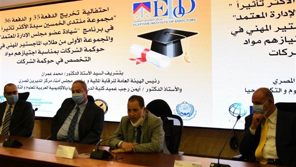 وذلك وفقا لبروتوكول التعاون المشترك بين كلية الدراسات العليا في الإدارة بالأكاديمية ومركز المديرين المصري بالهيئة العامة للرقابة المالية، والمتضمن تنفيذ برامج للدراسات العليا مشاركةً بين الجهتين وفقاً لآلية تعاون تتيح مزج الخبرة التطبيقية إلى الخبرة العلمية لمنح شهادة الماجستير فى إدارة الأعمال MBA فى مجال الحوكمة فى عدة مسارات تتعلق بحوكمة الشركات، حوكمة القطاع الصحي، حوكمة البنوك، الالتزام، وبما يسهم بنشر تطبيقات فكر الاستدامة.