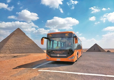 يشار إلى أن شركة أوراسكوم بيراميدز للمشروعات تتولى تطوير وتشغيل وتقديم الخدمات للزائرين بمنطقة أهرامات الجيزة، ومن بينها تشغيل أتوبيسات كهربائية لخدمة الزائرين.