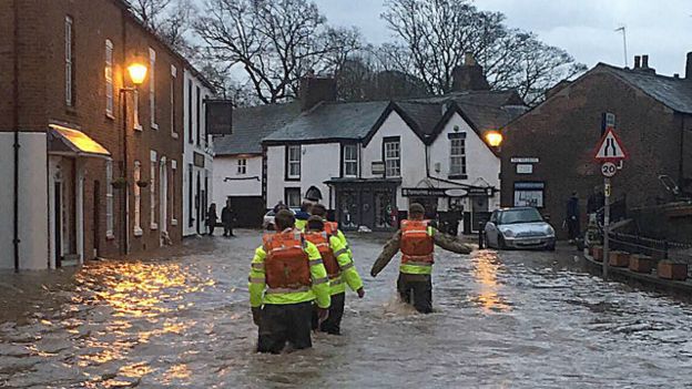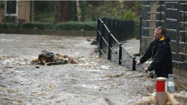 وتشهد منطقة شمال انجلترا معدلات مرتفعة من الفيضانات بسبب الامطار المستمرة منذ اكثر من أسبوع ما تسبب في غرق الاف المنازل كما فاضت مياه الأنهار في مدينتي مانشستر وليدز.