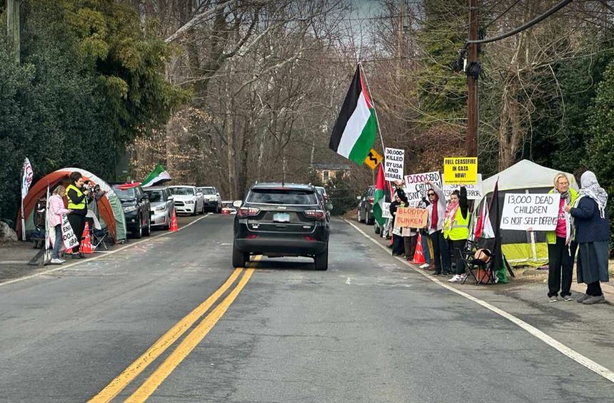 نصب متظاهرون داعمون لفلسطين، أمس السبت، خياما أمام منزل وزير الخارجية الأمريكي، أنتوني بلينكن، في ولاية فيرجينيا، مطالبين بوقف إطلاق النار في غزة.