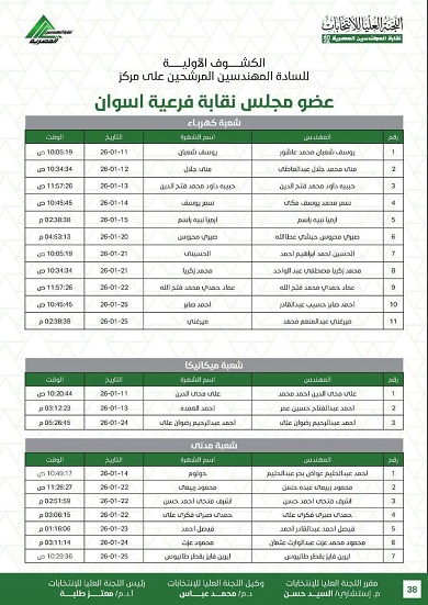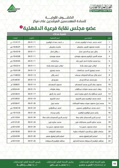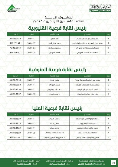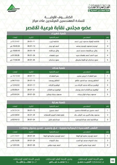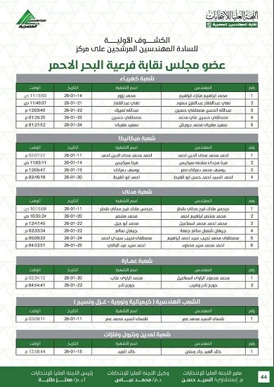 أعلنت اللجنة العليا لانتخابات نقابة المهندسين الكشوف الأولية للمرشحين في الانتخابات، على أن يلي ذلك فتح باب الطعون والتنازلات وفقًا للجدول الزمني المقرر.