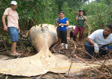 هذا ما حدث بالفعل في إحدى غابات البرازيل يوم الأحد الماضي، حيث عثر مجموعة من الصيادين على حوت أحدب، أو ما يُعرف بـ«جمل البحر»، نافِقًا في غابة الأمازون بجزيرة «ماراجو» البرازيلية على مسافة أميال من مياه المحيط الأطلسي؛ الأمر الذي حير الخبراء البرازيليون حول كيفية وصول حوت يزن 10 أطنان إلى منطقة شجرية قريبة من البحر؛ بحسب وكالة أنباء الشرق الأوسط.