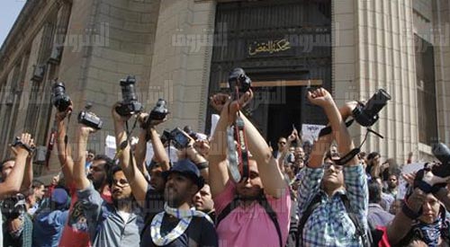 نظمت نقابة الصحفيين، اليوم الخميس، عددا من الفعاليات الاحتجاجية تنديدا بـ"حصار مجموعة من البلطجية ترعاهم قوات الأمن لمقرها بوسط القاهرة، والتحرش بأعصائها، وسب مجلسها" - حسبما قال النقيب يحيى قلاش.