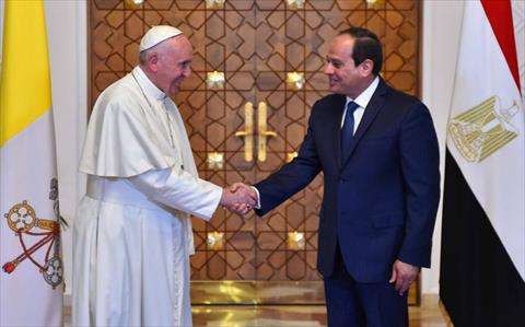 قال الرئيس عبدالفتاح السيسي، إن استقبال بابا الفاتيكان على أرض مصر، يعد إعلانًا للعالم عن وحدة الشعب المصري، حسب قوله.