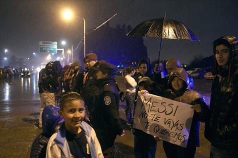 وتحولت وقفة الجماهير لاستقبال بعثة الأرجنتين إلى مظاهرات للمطالبة بتراجع النجم ليونيل ميسى عن قراره بالاعتزال دوليا بعد خسارة اللقب، حيث رفع العديد من المشجعين لافتات تطالب مهاجم برشلونة بالاستمرار مع المنتخب.