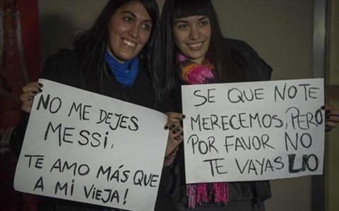 وكانت إحدي اللافتات التي حملتها الجماهير لميسي : "ميسي لا ترحل أبدا، إذا لعبت فى السماء سأقتل نفسى لأراك""