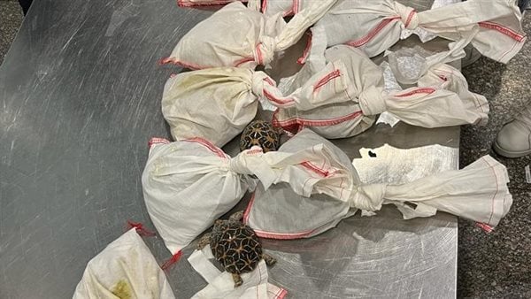 وبفحص مشمول المضبوطات، تبين أنها عبارة عن ١١ كيسا داخلها ٧٣ ثعبانا منها ٤٨ أحياء و٢٥ نفقوا وكيس بداخله اثنين سلحفاة؛ تم التخلص من النافق بطريقة صحية لا تضر بالبيئة بواسطة أعضاء اللجنة.