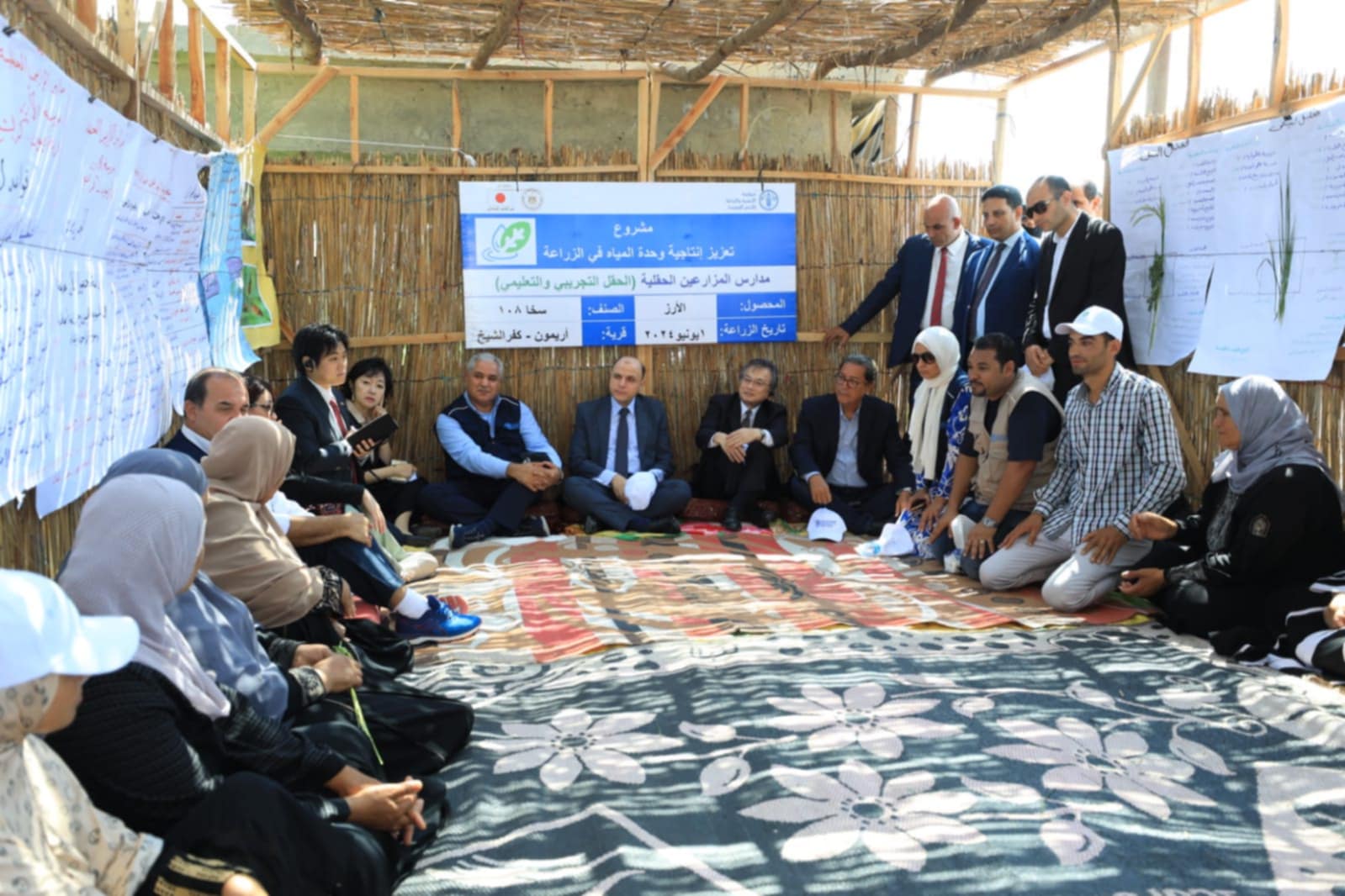 وتضمنت زيارة محافظ كفر الشيخ والسفير الياباني زيارة إحدى المدارس الحقلية الجاري تنفيذها (زراعة محصول الأرز بنظام الشتل واستخدام الميكنة الزراعية)، وعرض ماكينة الزراعة على مصاطب (إيكاردا - مركز بحوث الميكنة الزراعية).