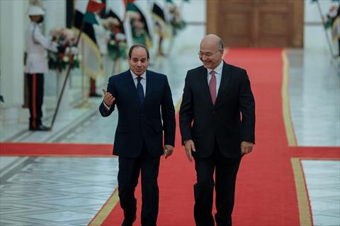 ورحّب صالح، بالرئيس السيسي، خلال جلسة مباحثات ثنائية تناولت العلاقة بين البلدين الشقيقين، مؤكداً أن العلاقات العراقية المصرية في تطور مهم، وتستند إلى علاقات تاريخية مشتركة يتقاسمها البلدان والشعبان الشقيقان، مشيراً إلى أهمية تعزيز مستوى التنسيق الاقتصادي والتجاري، وتعزيز عمل التعاون الثلاثي الذي يضم الأردن، والاستفادة من التواصل الجغرافي، والتأسيس لمشاريع البنى التحتية ونقل الطاقة ومدّ أنابيب النفط.