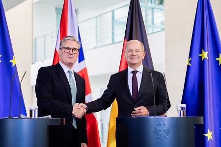 وخلال مؤتمر صحفي مشترك مع المستشار الألماني أولاف شولتس، قال ستارمر في برلين اليوم الأربعاء إن بريطانيا تسعى، بعد سنوات من حكم المحافظين، إلى إنشاء بداية جديدة في العلاقات مع أوروبا والاتحاد الأوروبي.