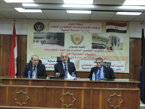 نظمت الإدارة العامة للحماية المدنية، برئاسة اللواء مجدى الشقانى مساعد وزير الداخلية للحماية المدنية، ورشة عمل داخل مقر الإدارة بمدينة نصر في القاهرة ، للوقوف على العقبات والمشكلات التى تواجه الإدارات أثناء عملها، وتبادل الخبرات وتعزيز التعاون بين كافة القطاعات والإدارات على مستوى الجمهورية.