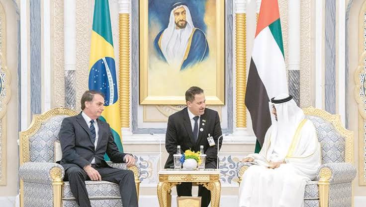 وأوضحت الوكالة أن بولسونارو عقد في أبوظبي "اجتماعات مع كل من الشيخ محمد بن راشد آل مكتوم نائب رئيس الدولة رئيس مجلس الوزراء حاكم دبي والشيخ محمد بن زايد آل نهيان ولي عهد أبوظبي نائب القائد الأعلى للقوات المسلحة .. وقد اتفق الجانبان على الإرتقاء بالعلاقات الثنائية وتعزيزها لتصل إلى مستوى الشراكة الاستراتيجية حيث جرى توقيع مذكرة تفاهم بشأن الشراكة الإستراتيجية بين دولة الإمارات والبرازيل في مجالات الأمن والسلام والاقتصاد والطاقة والسياحة والثقافة والرياضة".
