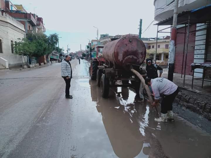 حملات نظافة وتسليك صفايات الأمطار وإزالة التعديات بمدن كفر الشيخ